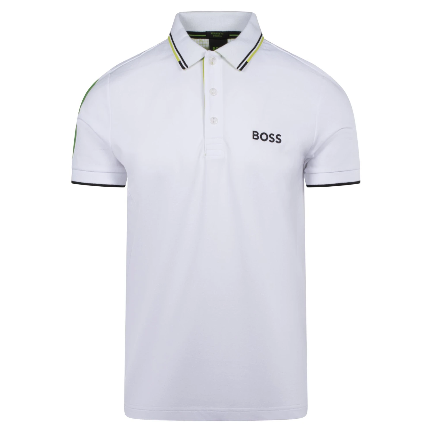 The timeless classic Paddy Pro polo shirt returns for another season with an updated look. Featuring the updated BOSS logo embroidered both at left chest and at the yoke for a striking, modern look, the Paddy Pro continues to offer comfort, style and performance. The contrast tipping at the collar and the sleeves give the Paddy Pro additional style points making it a must-have look which is equally at home both on and off the golf course.