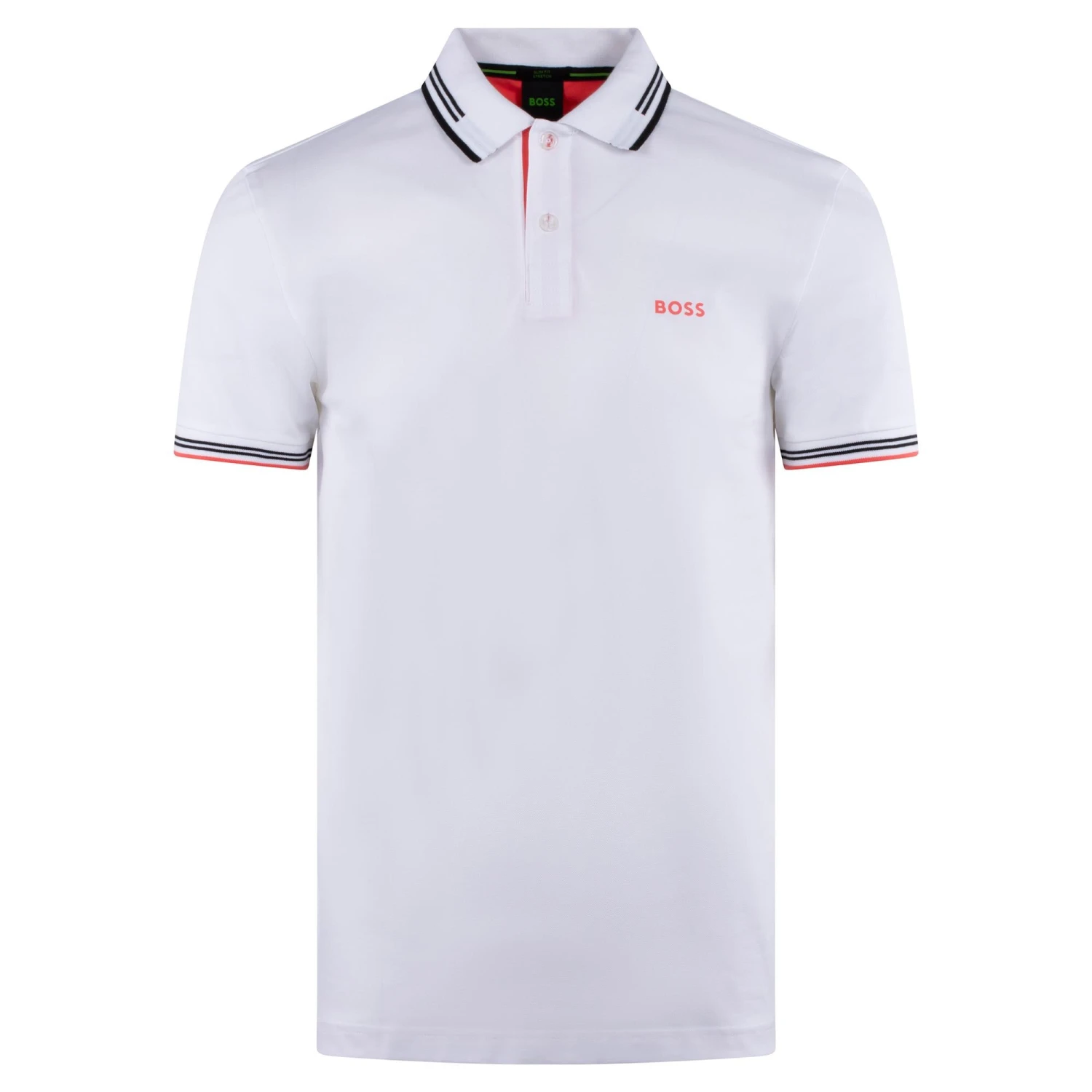The Paul is a contemporary polo shirt cut to a defined fit by BOSS Menswear. The Paul has been crafted in stretch cotton with contrast stripes at both the collar & cuffs. With the iconic BOSS logo at the left chest further elevating the look, the versatile Paul is the perfect polo whether worn on the golf course or casually.