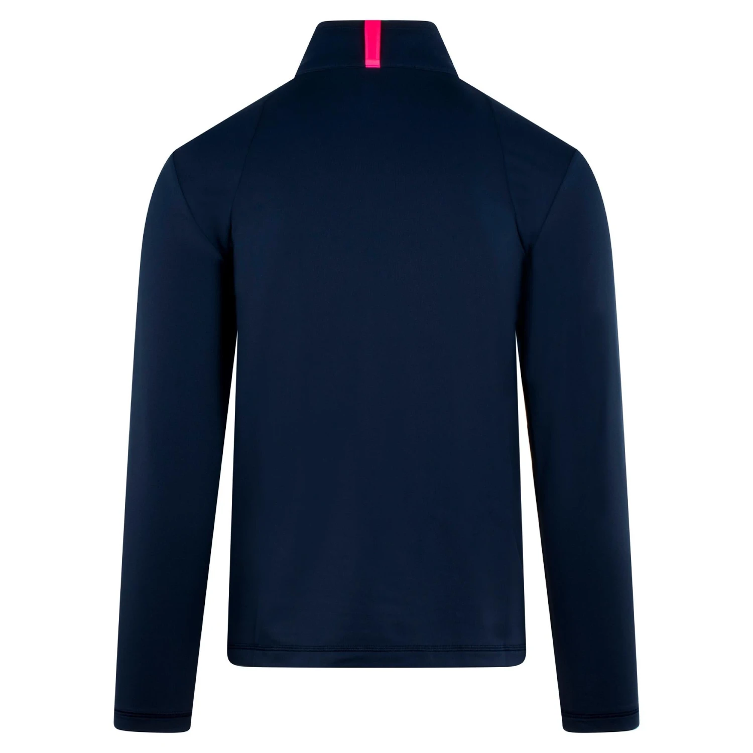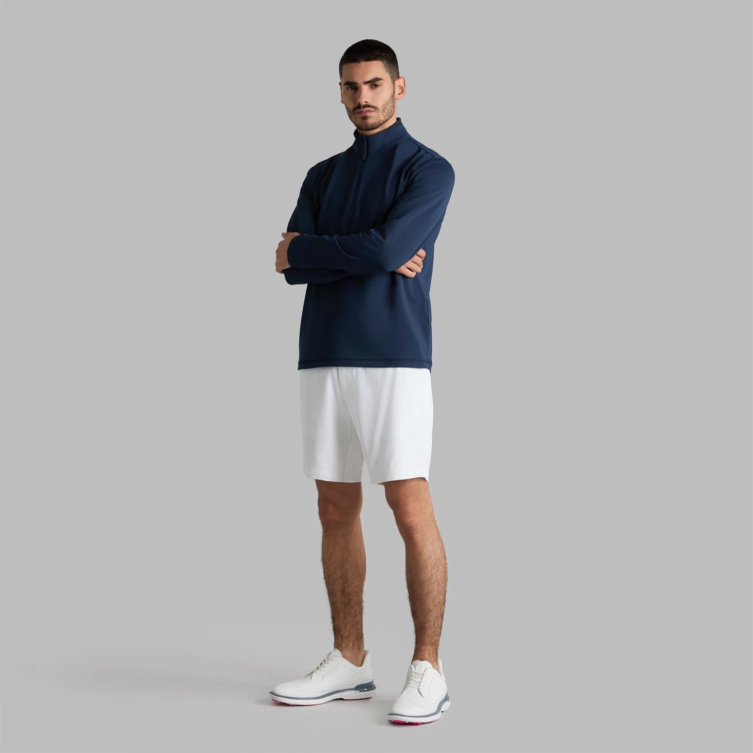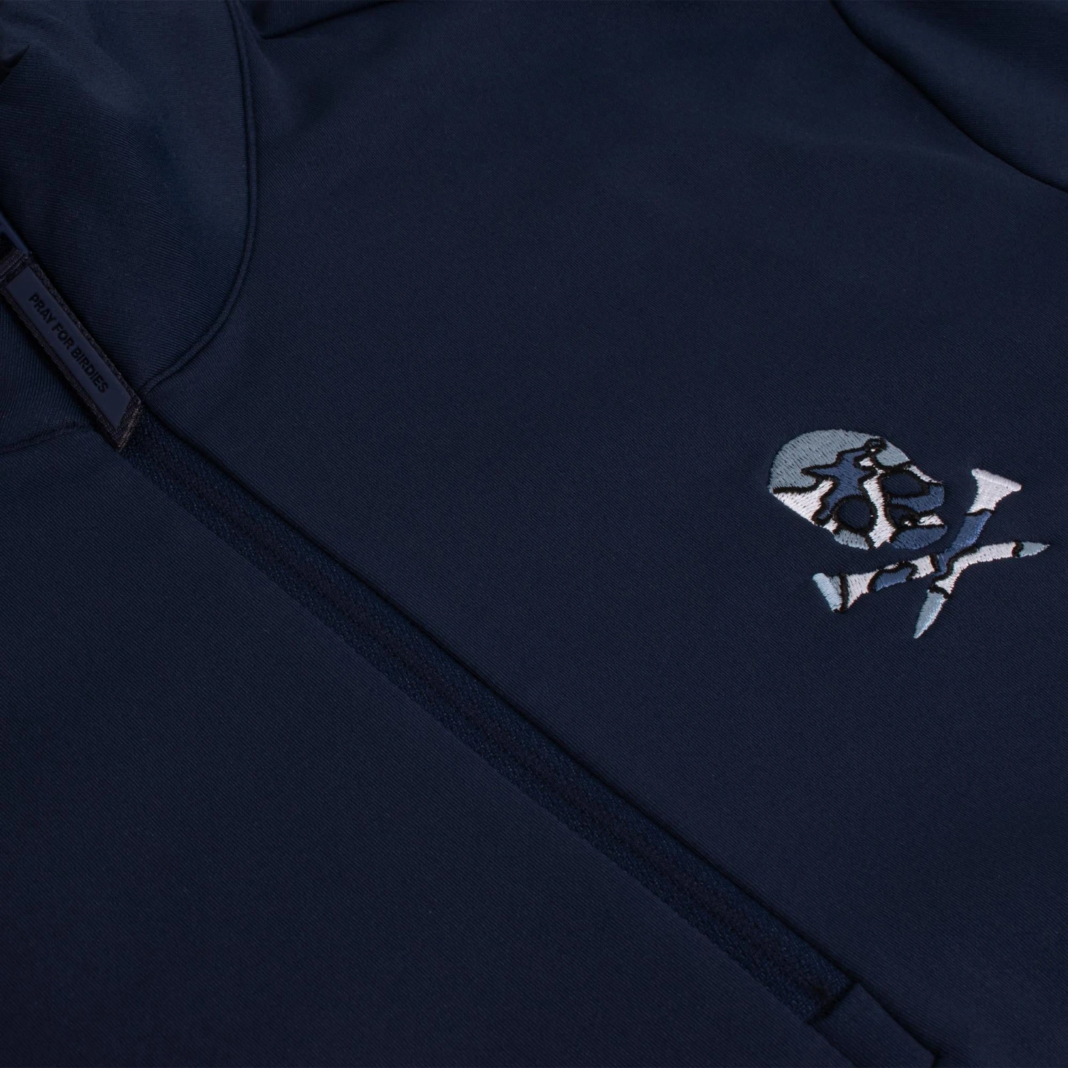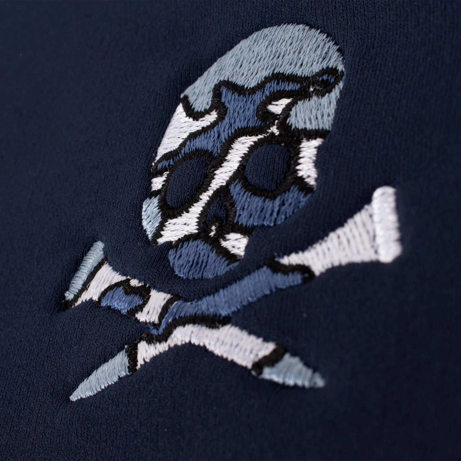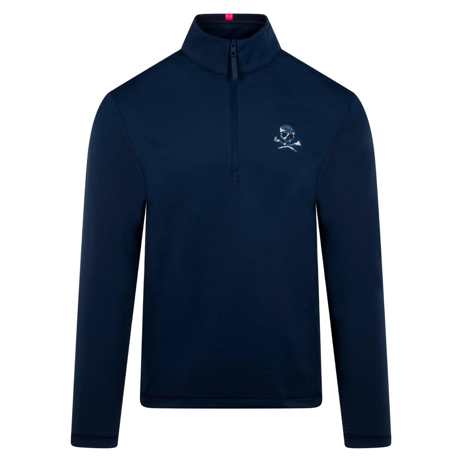 The brushed back quarter zip pullover from G/FORE is the perfect sporty style to layer over your polo on the golf course when the temperatures drop. Constructed from a lightweight tech fabric with 4-way stretch which guarantees both comfort and freedom of movement, the look is completed with the Camo Skull & T’s logo at the chest, a design that is exclusive to TEEPEG. Wear this mid over your polo or with shorts or trousers from the G/FORE mens clothing range for a knockout look this season both on and off the course.