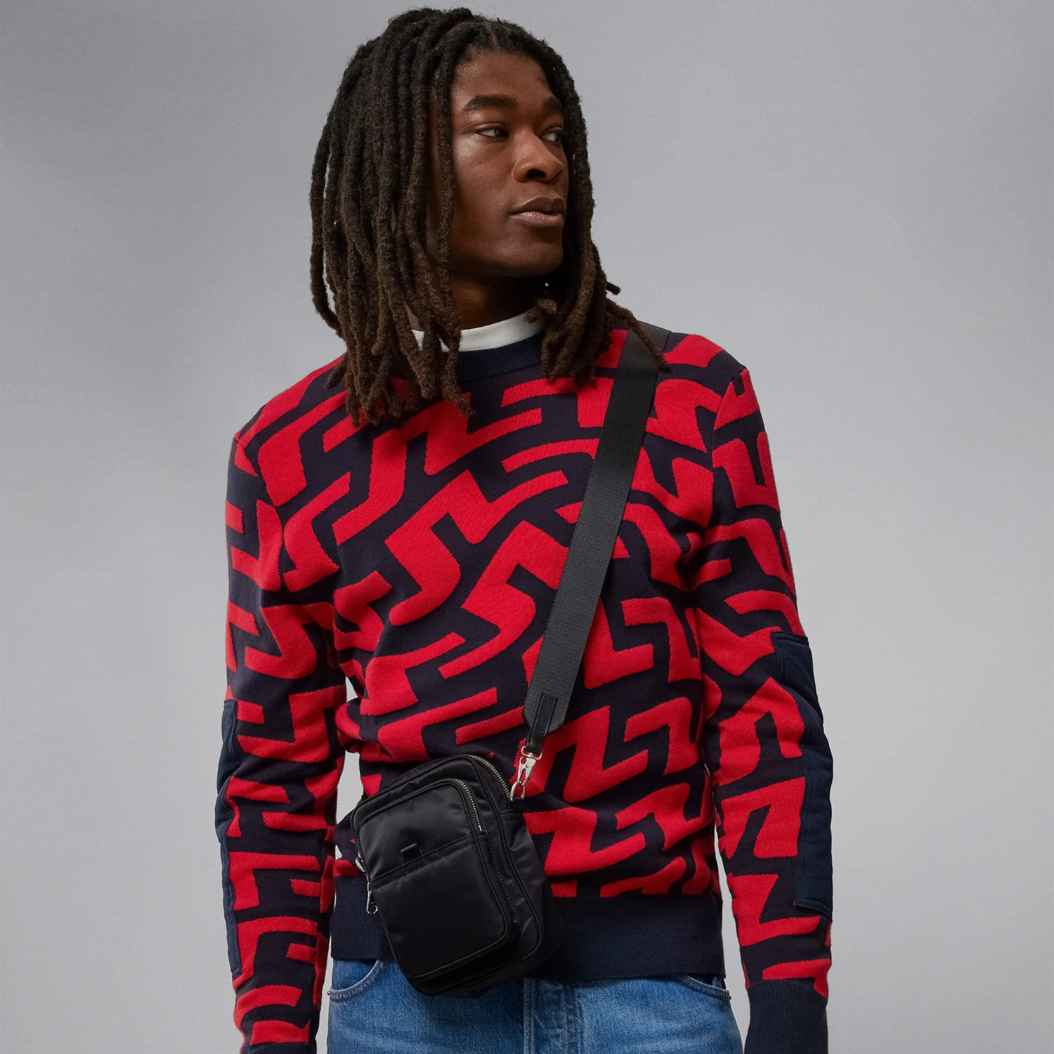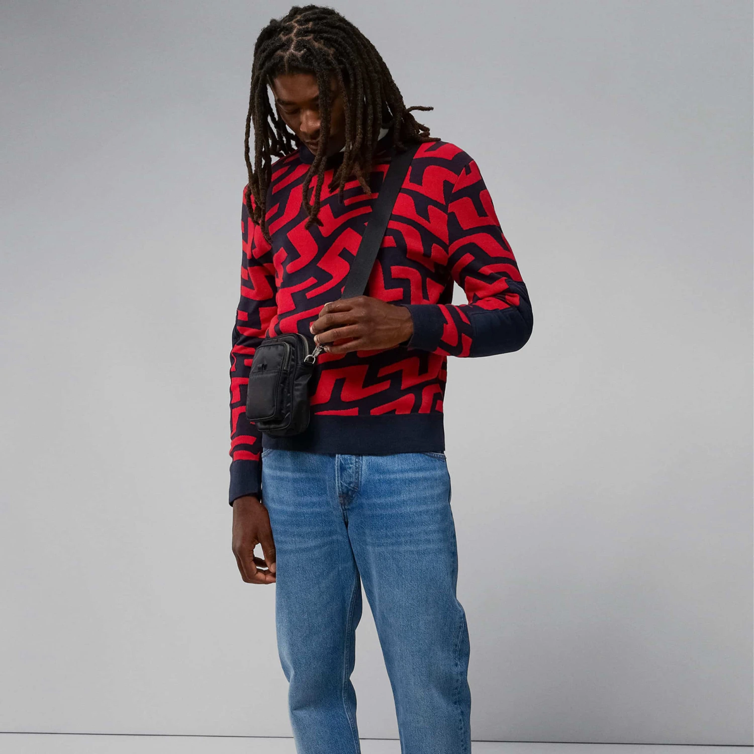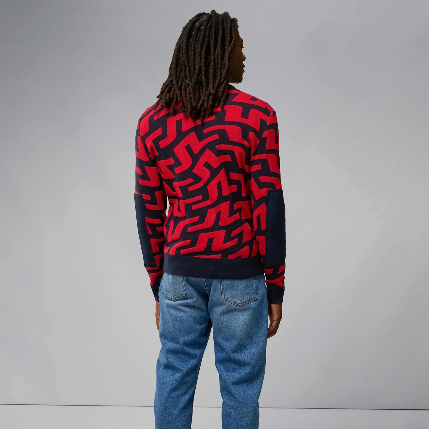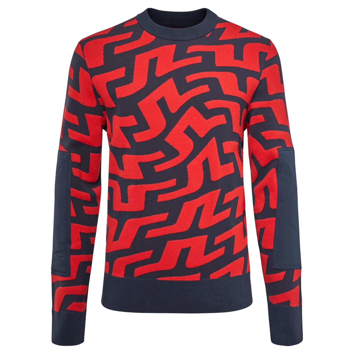 Another showpiece garment from the AW22 collection – The swirl knitted sweater is engineered jacquard knit with high/low effect features contrast bridge logos for a stand out appearance. Fashion meets sportswear with this 14 gauge double knit sweater which is equally at home both on or off the golf course.