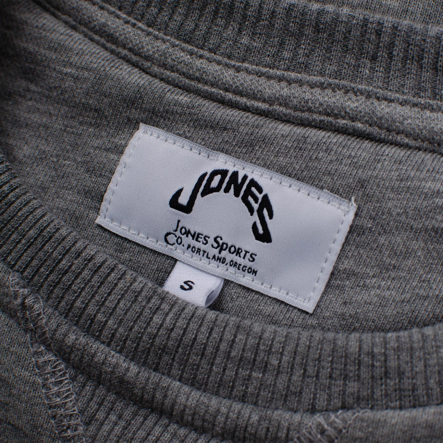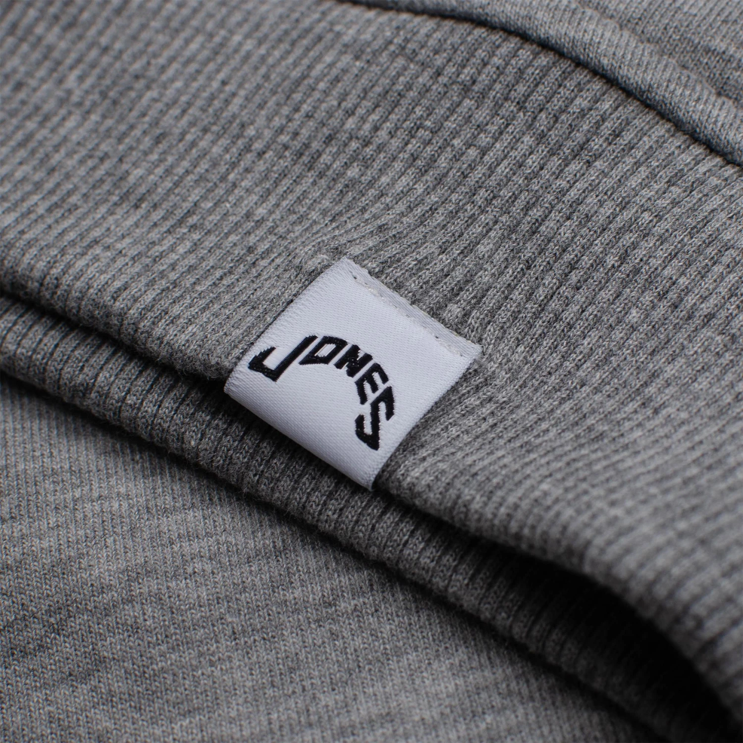 - Jones logo tab at hem