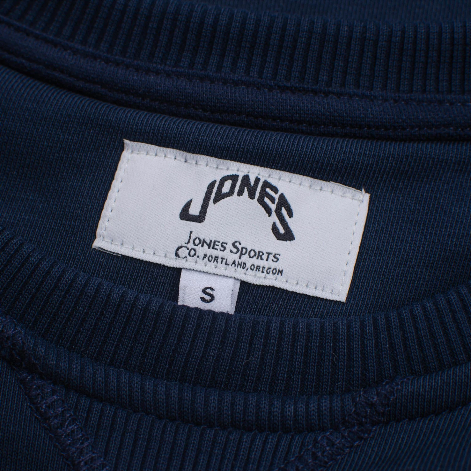 - Jones logo tab at hem