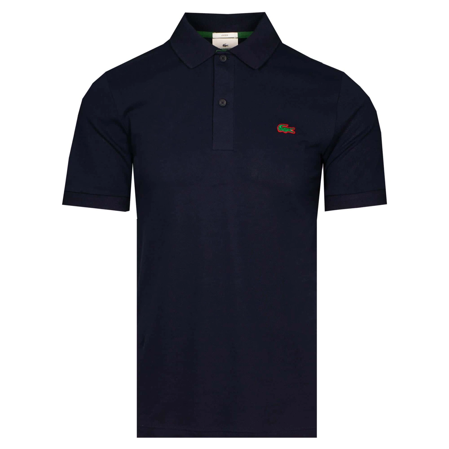 - Embroidered alternative-coloured Lacoste crocodile logo on the left chest