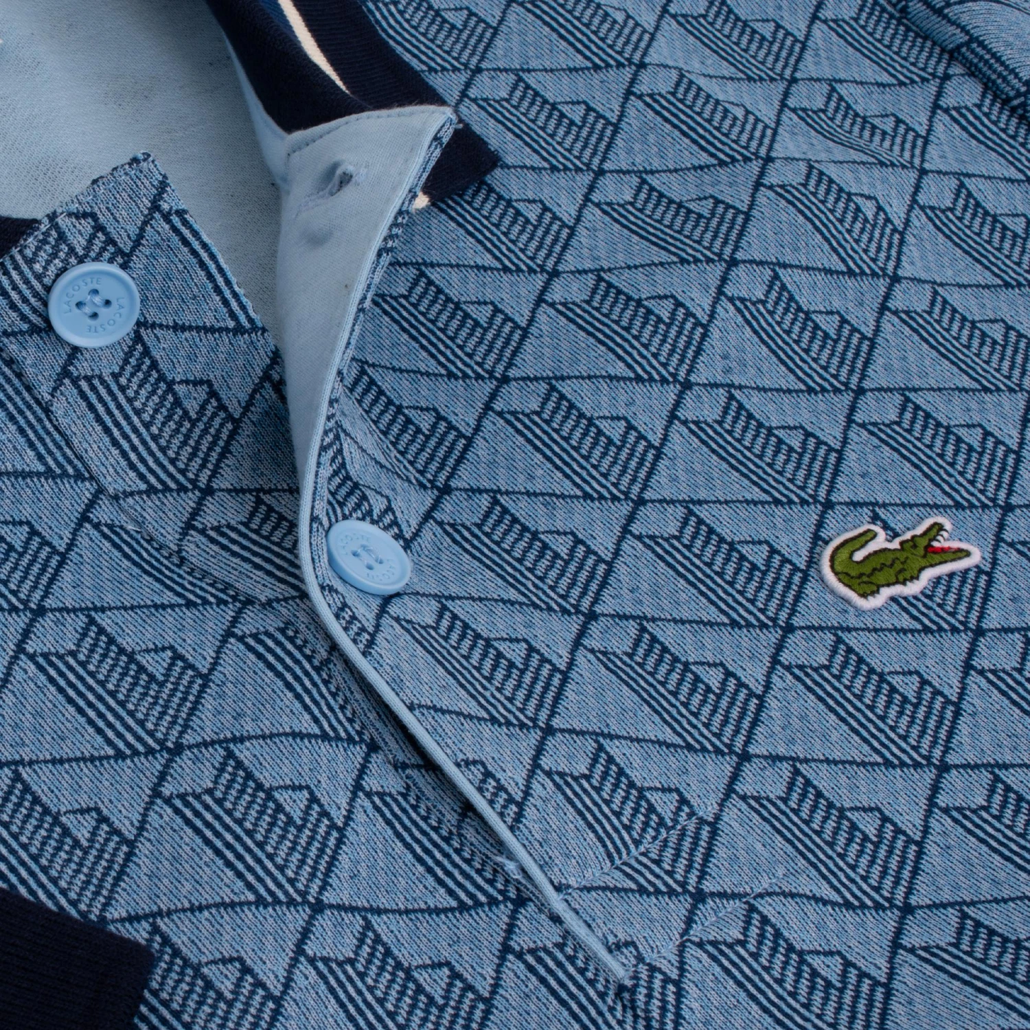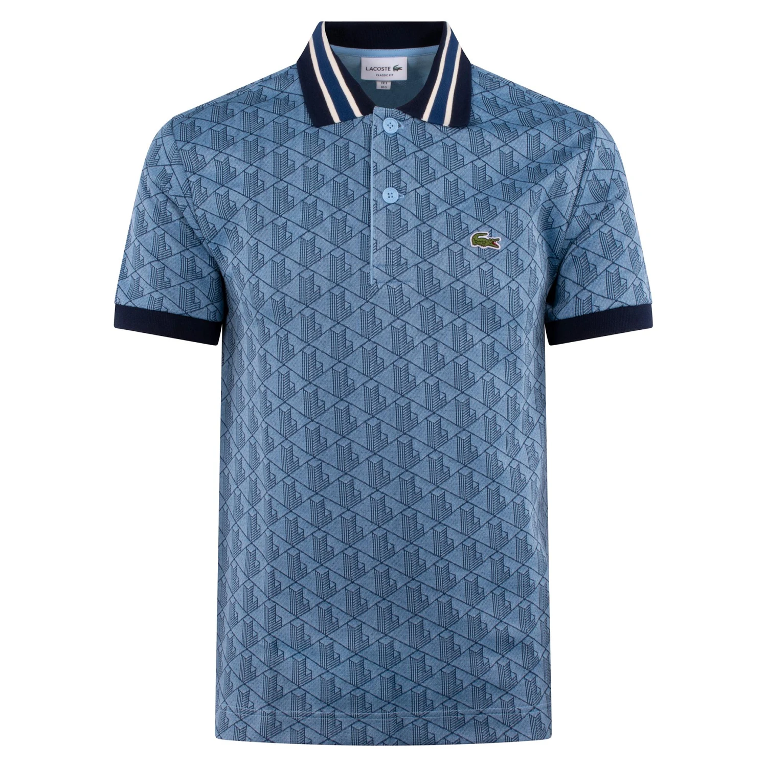 Mens Lacoste Monogram Motif Polo Shirt Blue