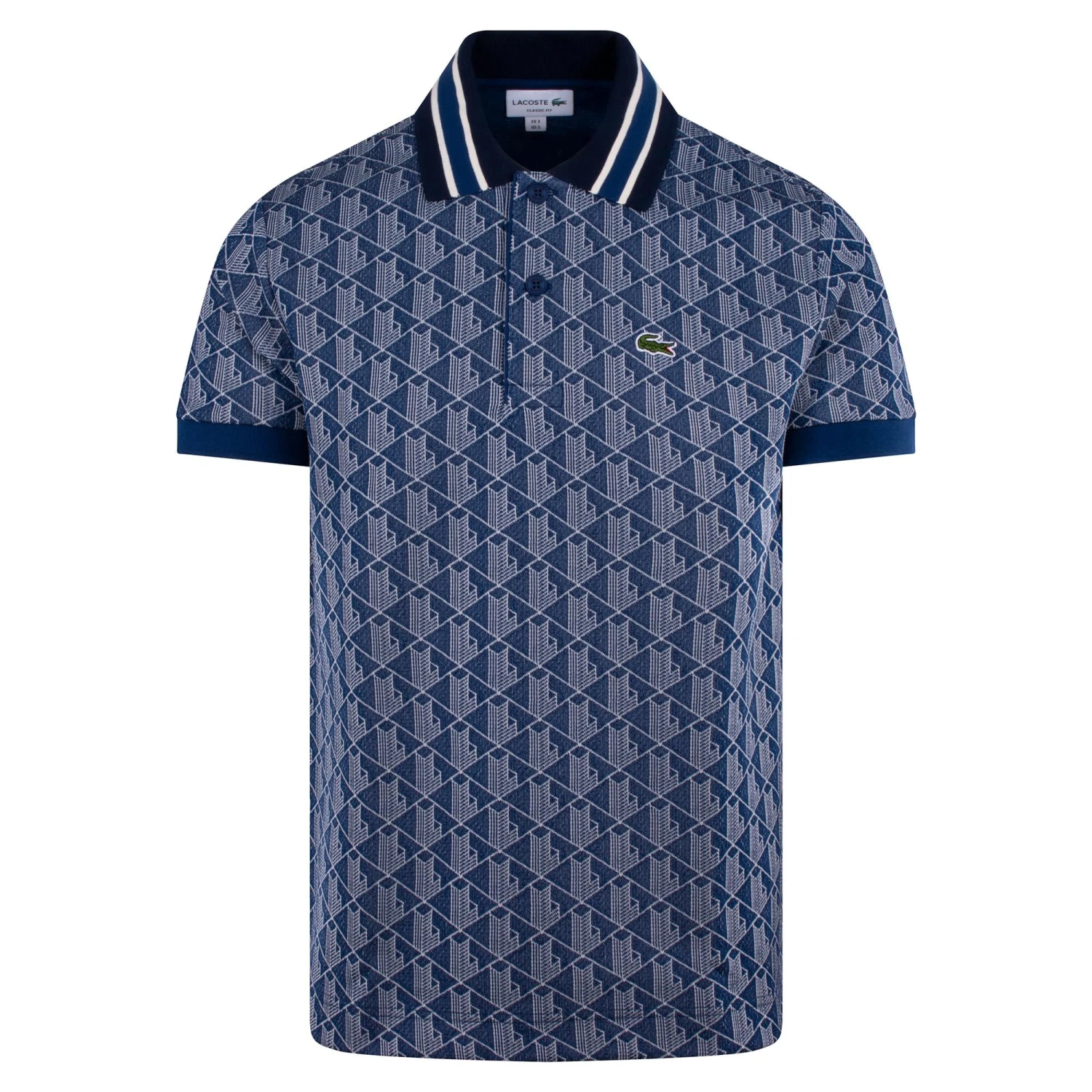 Mens Lacoste Monogram Motif Polo Shirt Navy