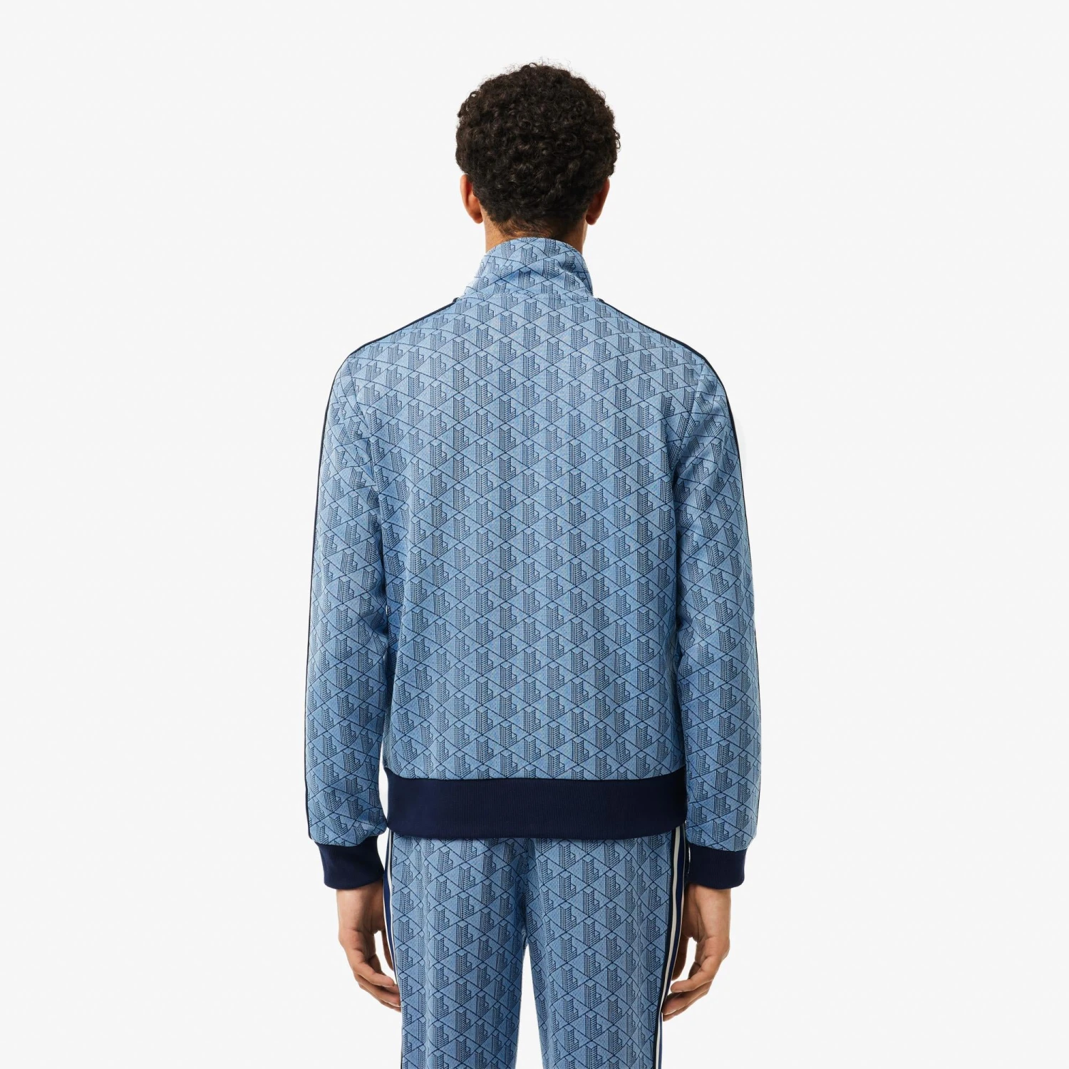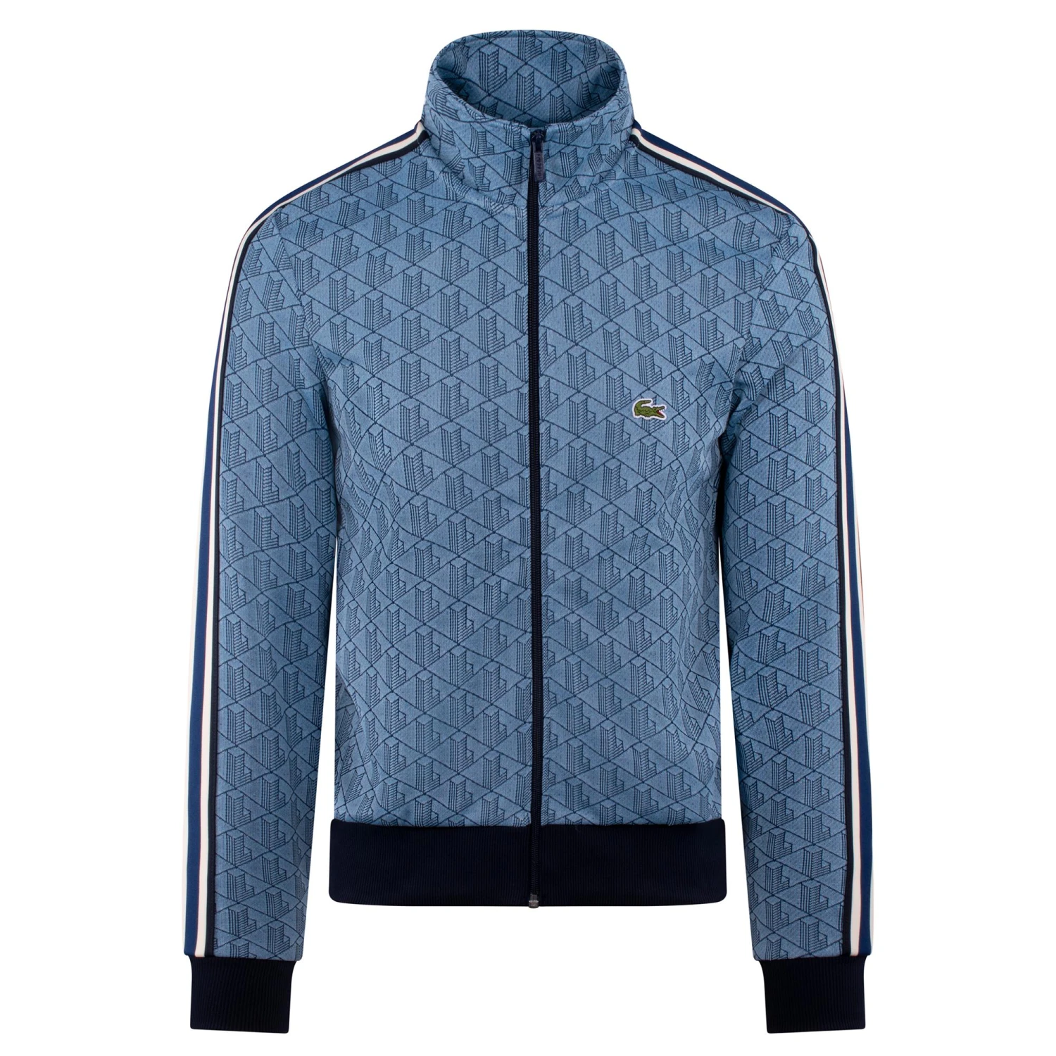 Mens Lacoste Paris Jacquard Monogram Zipped Sweatshirt Light Blue/Blue