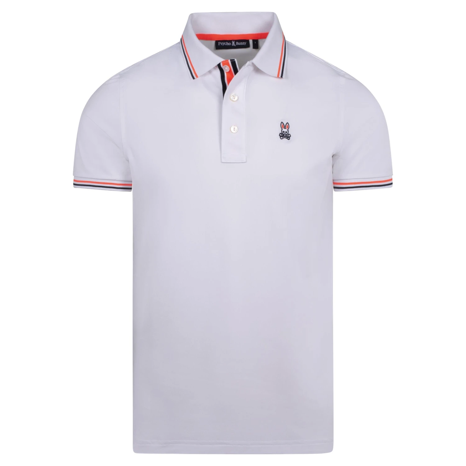 Crafted from a stretch tech piqué, the men’s Alvin sport polo from Psycho Bunny catches the eye with its contrast striped tipping. Fitted with a three-button placket and stripe taped shoulders, the polo finished with the iconic Bunny logo embroidered at the left chest. The Alvin guarantees style as well as comfort and functionality when worn either on or off the golf course.