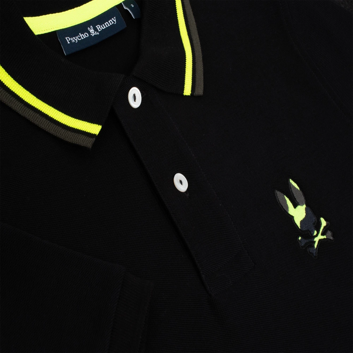 The eye-catching Plano mens polo from Psycho Bunny combines signature comfort & quality with a statement camo logo embroidered at the left chest. Crafted from pima cotton which ensures optimum comfort levels, the Plano also features further detailing provided by both the mother of pearl buttons and the contrast tipping at the collar. This versatile polo is sure to become a must-have all year round whether on or off the golf course.