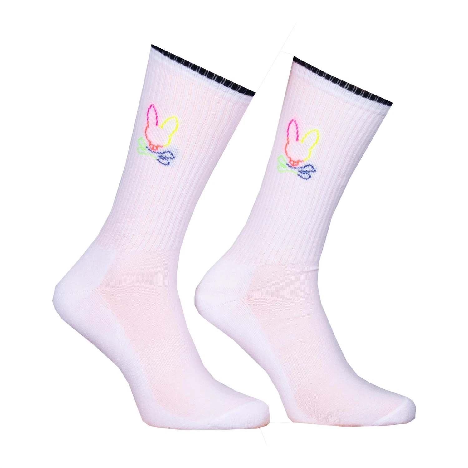 These Psycho Bunny men’s sport socks are the perfect accessory to a golf ensemble and are equally effective as a fashion-forward injection to a casual look. These socks also feature a neon embroidered Bunny logo at the cuffs for additional detailing.